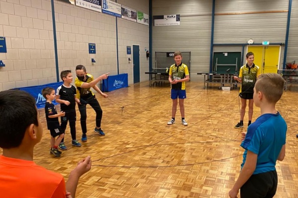 De tafels werden in rap tempo klaargezet, uiteindelijk stonden er 7 tafels met op iedere tafel een ander spelelement. Om de 5 minuten mochten de deelnemers een plaats naar rechts doorschuiven met als resultaat dat alle deelnemers op alle 7 tafels hebben kunnen spelen en dat iedereen tegen elkaar heeft kunnen tafeltennissen.